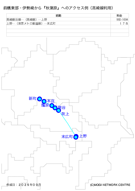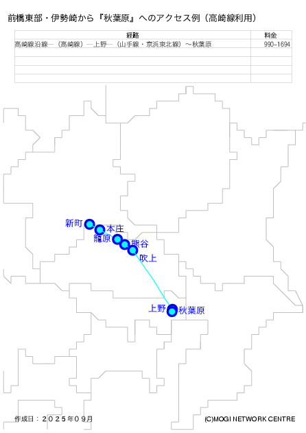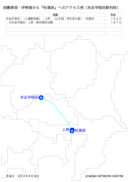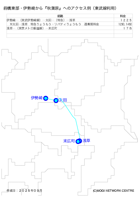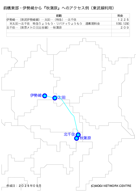 - 東武伊勢崎線沿線から秋葉原の北西方面に行く方法です。