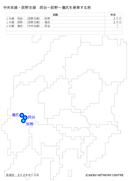 | 中央本線(辰野支線) | 岡谷~辰野~塩尻 | 2025年10月 ![]() | |