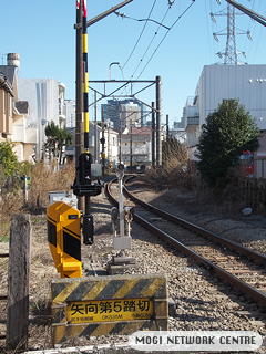 矢向第5踏切です。「尻手短絡線」の記載があります。 |