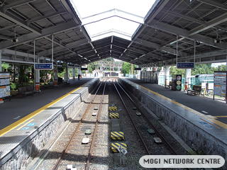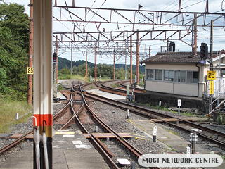 下今市方面です。かなりの急カーブで、どの車両もキキキキーという音を立てながら入線・発車していきます。 |