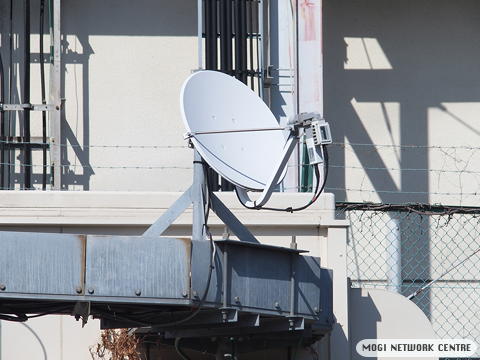 JCSAT-2B向け衛星受信用パラボラアンテナを拡大してみました。よく見ると、LNBが他の局のものとソックリです。 |