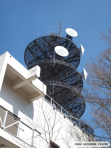 パラボラアンテナ以外にも、業務無線用基地局のアンテナや八木アンテナなどが見えます。 |