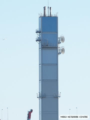 全景です。NTTドコモの携帯電話基地局アンテナ以外にも、(画像ではわかりにくいですが)東京ガスネットワークの業務無線基地局っぽいアンテナが見えます。またパラボラアンテナは下記のように推測しています。